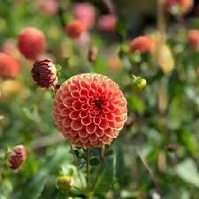 Le dahlia Cornel Bronze est la version chaleureuse du Cornel rouge. Ses fleurs parfaitement rondes dévoilent des nuances abricot, caramel et bronze qui évoluent légèrement au fil de la saison. Très florifère, il produit abondamment tout l’été jusqu’aux premières gelées.
